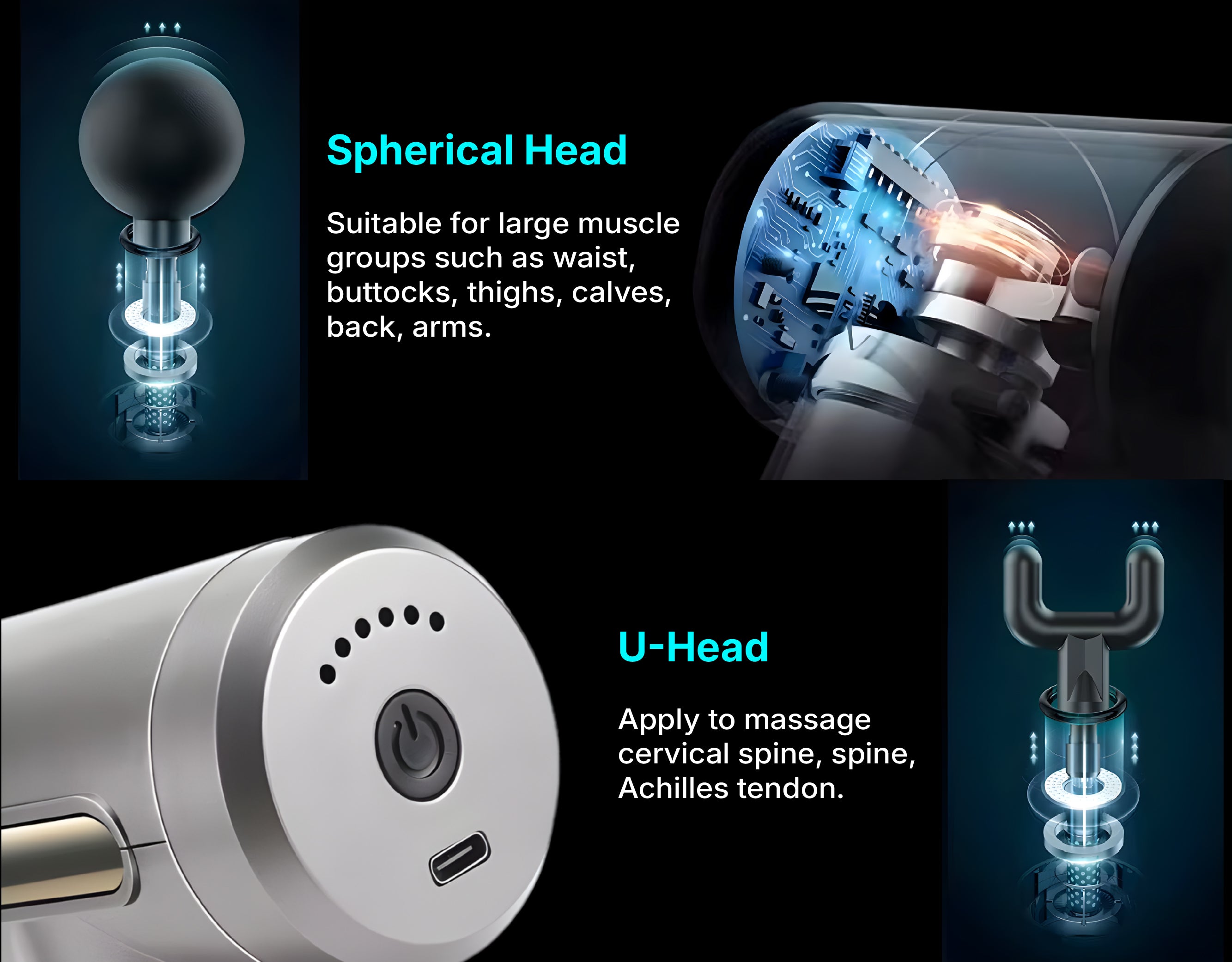 This device comes with four interchangeable massage heads, each designed to target different muscle groups and provide customized relief.